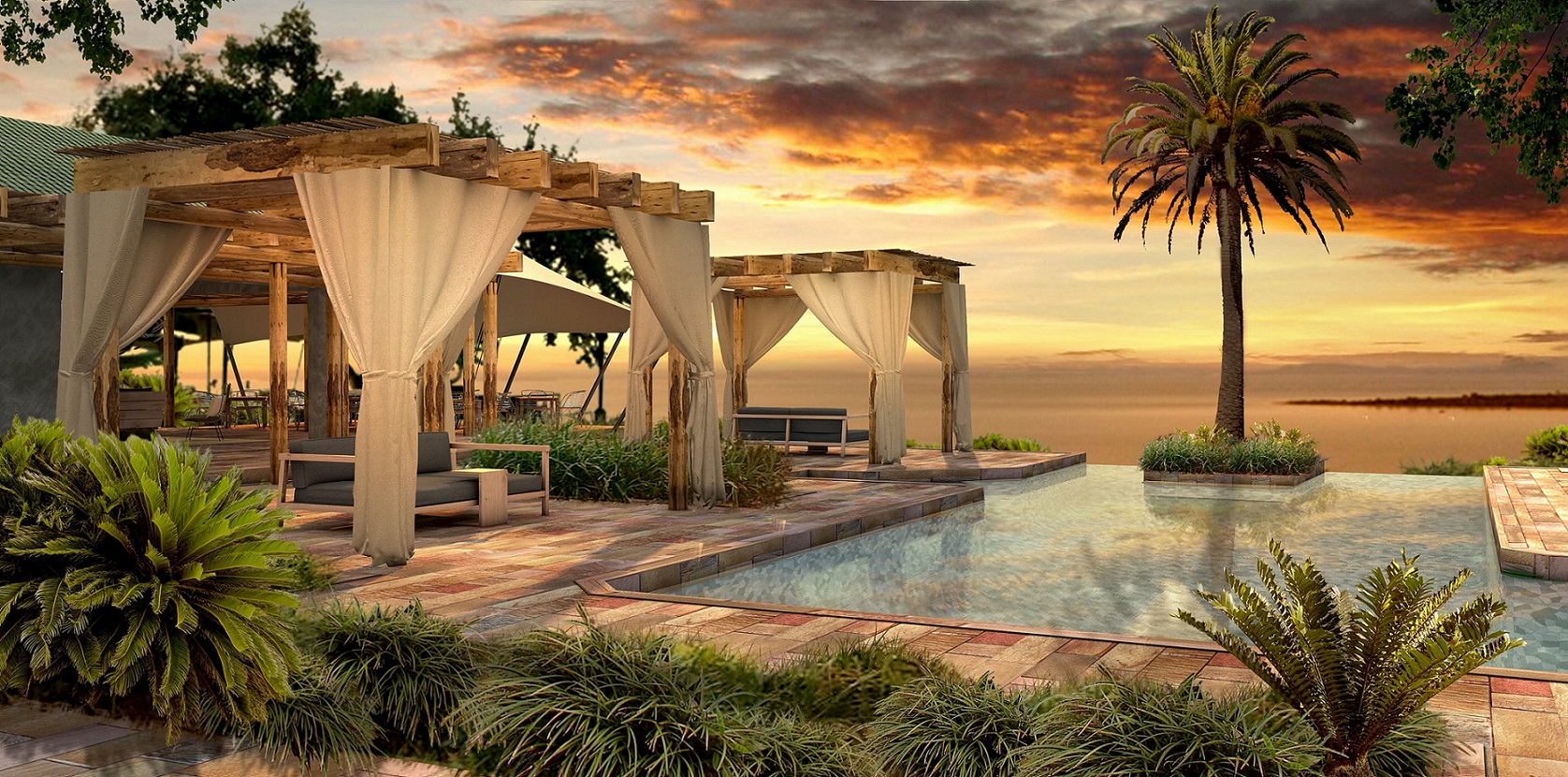Bumi Hills, widely revered as having the best panoramic view of Lake Kariba, has been completely refurbished and upgraded to flaunt the breath-taking vistas of the blue waters of the lake. Bumi Hills Safari Lodge will welcome guests from late December 2017. The spectacular views and unsurpassed comfort and luxury on the shores of Lake Kariba will enchant visitors. 10 Lakeview rooms and 2 premium suites, furnished and styled with contemporary minimalism and African fusion, overlook the endless blue waters of the Lake and the game-rich shoreline below. The main area which surrounds the iconic infinity pool is designed to give the feeling of a beach retreat that combines serenity with style. The bar and dining deck, situated on a ridge below the pool, offer an uninterrupted view of paradise beyond and the changing pink-to-red-to-orange skies and sunsets that Lake Kariba is famous for. The spa and gym at the lodge provide a place for guests to relax and rejuvenate, where safari-goers can unwind. Bumi Hills Safari Lodge offers guests a multitude of ways to explore the unique ecosystem of Lake Kariba. From game drives and boating safaris; from adrenalin-fuelled tiger fishing to walking safaris in search of fossilized dinosaur footprints; and from sunset cruises to experiencing the rich cultural